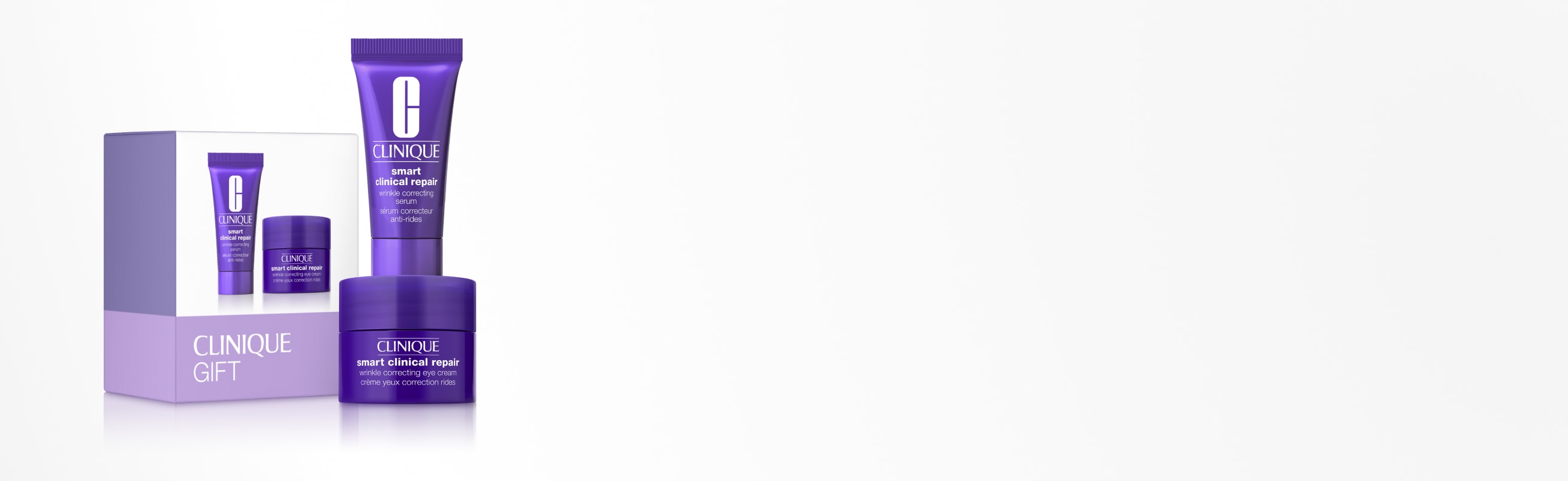 Beim Kauf von mindestens zwei Produkten erhältst Du ein Smart Clinical Repair™ Duo: ein kleines Smart Clinical Repair™ Wrinkle Correcting Serum und eine Smart Clinical Repair™ Wrinkle Correcting Eye Cream.*